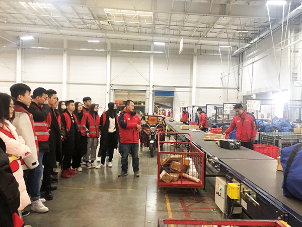 百世物流科技公司企业人员向同学们详细介绍了百世快递、百世快运不同的营运模块,并带领学生参观了物流公司的运作环境,让同学们深入了解到了不同快件在运输、分拣、搬运、仓储等方面的运作流程,并认识了机械化和自动化的物流设备。