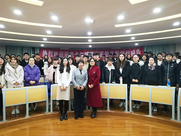 12月19日,外国语学院旅游与酒店管理专业负责人丁爱芹的邀请,西安丽思卡尔顿酒店人力资源总监Wanda Wei和经理Demi Zhang来我校作了主题为“国际品牌酒店人才需求与发展”的精彩报告。报告会在我校图书馆303报告厅举行,外国语学院院长谢俊平教授亲临报告会现场对嘉宾表示热烈欢迎,旅游和酒店管理专业全体教师和100多名学生到场聆听,报告会由丁爱芹主持。