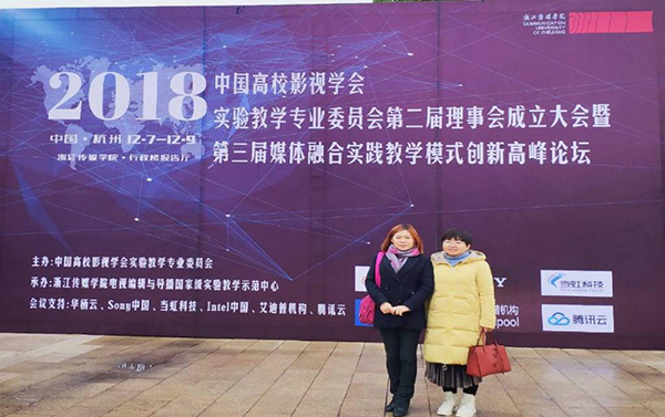 12月7日-12月9日,传媒学院院长张西静、实验室教师杨莹参加了在浙江传媒学院举办的2018中国高校影视学会实验教学专业委员会第二届理事会成立大会暨第三届媒体融合实践教学模式创新高峰论坛。来自全国各传媒类院校、媒体机构和相关单位代表共300余人参会。