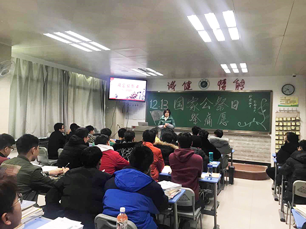 通过组织学生观看南京大屠杀史实视频片段、主题班会讲述大屠杀历史、宣誓等活动,让学生真正了解南京大屠杀历史事件,纷纷表示为祖国富强民主而奋起读书,勇于承担起历史赋予我们的责任。