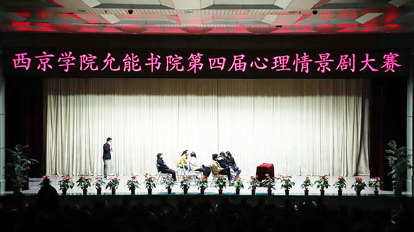 日前,允能书院举办了第四届校园心理情景剧比赛,允能书院院长程永清、事务科科长张爽、心理中心老师高坡、书院全体辅导员和2018级学生代表到场观赛。