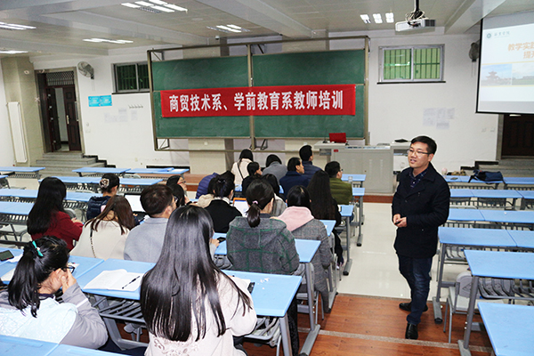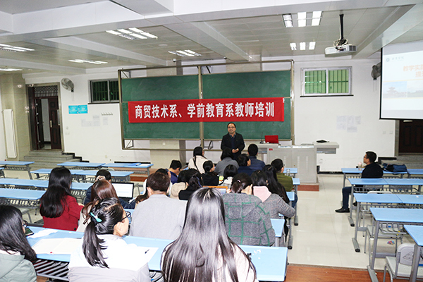 商贸技术系、学前教育系于11月8日在1128教室邀请信息工程学院邓海生副教授为教师进行教学实践与课程建设并举提升教学质量的专题培训。