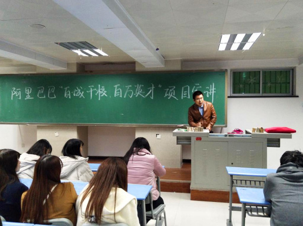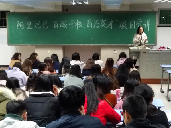 11月14日,商学院组织开展阿里巴巴跨境电商人才培养项目宣讲活动,北京方舟英才教育科技有限公司阿里巴巴项目组经理盖跃志和阿里巴巴认证讲师刘亚平应邀为学生做跨境电商项目讲座,2015级电子商务专业和国际贸易专业学生参加此次活动,会议由电子商务专业教师靳强主持。