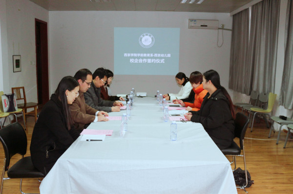 为加强学前教育系与西京幼儿园的合作,实现协同育人、互利共赢,11月15日,学前教育系与西京幼儿园举行了校企合作签约授牌仪式。学前教育系主任葛伟、教务科科长何建武及四名教师、西京幼儿园园长熊玲及三名管理层干部参加仪式。