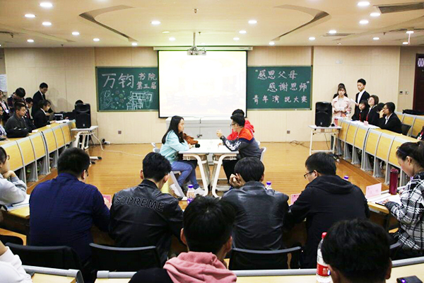 11月5日,我校万钧书院在图书馆201报告厅举行了第三届“感恩父母,感谢恩师”青年演说大赛。