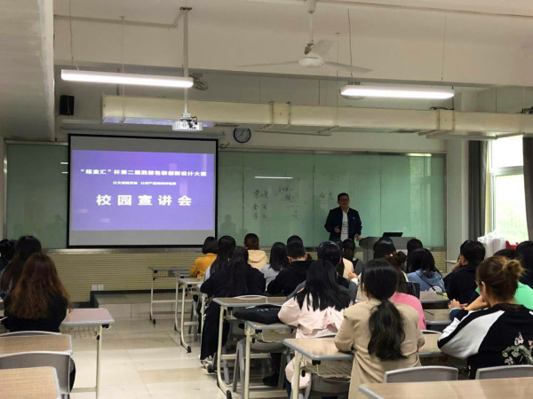 组委会刘星星老师从大赛的意义为开题,介绍本次比赛的主题、意义并且回顾第一届大赛的情况。宣讲中刘星星老师带领学生欣赏了第一届大赛的获奖作品,讲解了作品创意的思路和方法,介绍了包装设计的一些前沿印刷工艺,整个宣讲会气氛热烈。