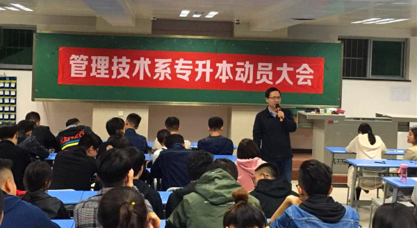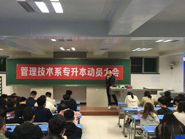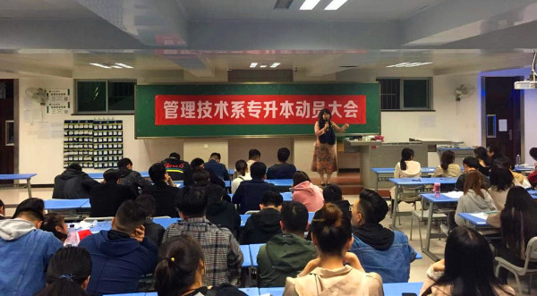 10月25日,管理技术系在1229教室举行“2019年专升本”动员大会。管理技术系主任李俊,专升本辅导教师代表黄静、历届专升本优秀学生张钧、任利华及参加2019年专升本学生参加动员大会。