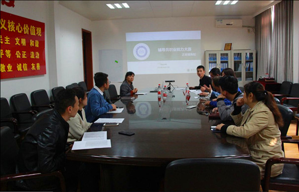 为推动书院辅导员队伍职业化、专业化建设,提高辅导员职业能力、工作水平和理论素养,创业书院辅导员素质能力大赛在6号办公楼206会议室举行,创业书院院长王素兰、学生发展科科长赵文杰及学生事物科科长赵晓华担任大赛评委,全体辅导员参加此次大赛。