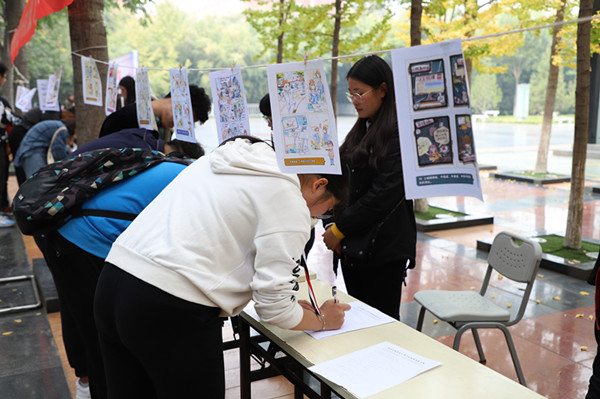 活动中,学生干部向广大学生逐条解读了《西京学院学生日常行为规范》《西京学院学生管理规定》、《西京学院学生违纪处分条例》的具体内容,通过漫画展出、问卷调查等形式明确告知同学们在日常学习生活中必须遵守的日常行为规范,倡议同学们努力克服和改正有违规范的言行举止,对学生良好行为习惯养成和优质品质的形成起到了重要作用。