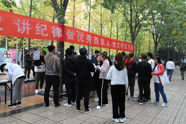 10月17日,为进一步加强我校大学生日常行为规范教育,培养学生良好的生活习惯,提高学生的思想道德素质,促进优良学风、校风建设,促进学生的健康成长和全面发展。根据《公民道德建设实施纲要》《大学生行为准则》《西京学院学生日常行为规范》,万钧书院在璞玉餐厅门前广场开展“学生日常行为规范”主题教育活动。