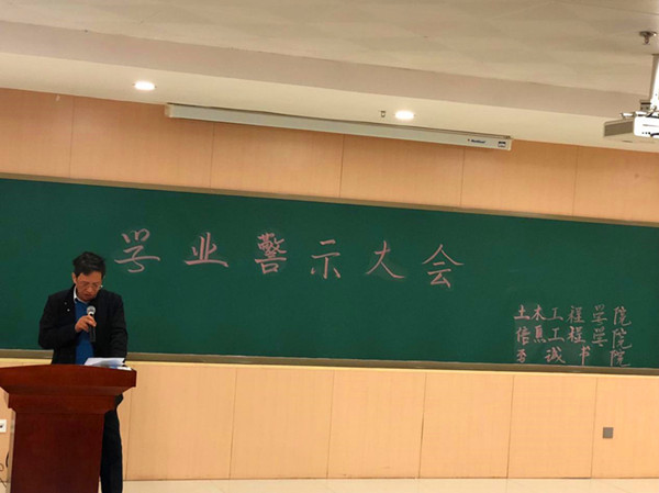 为进一步宣传学业警示制度,使学生了解并遵守这项制度,10月24日,至诚书院在图书馆102报告厅举行学业警示教育大会。土木工程学院院长傅少君、信息工程学院副院长乌伟,至诚书院辅导员和受学业警示的所有学生共100余人参加本次大会。会议由至诚书院事务科科长高玉枝主持。