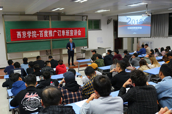 西京学院-百度推广订单班宣讲会的顺利召开,不仅促进了校企双方不断拓展、深化合作渠道,最终实现校企共赢;同时,为进一步学院拓展校企合作的深度和广度起到了积极作用。
