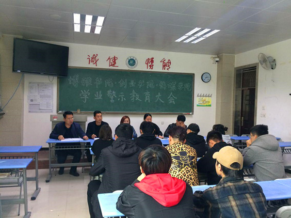 会上,首先向累计一学期补考后不及格课程达到6学分(含)以上者及一学期旷考1门及以上课程的同学发放《传媒学院学业警示教育通知书》。张欢生就《西京学院本科学籍管理规定》中有关学业警示教育的依据要求进行解读。
