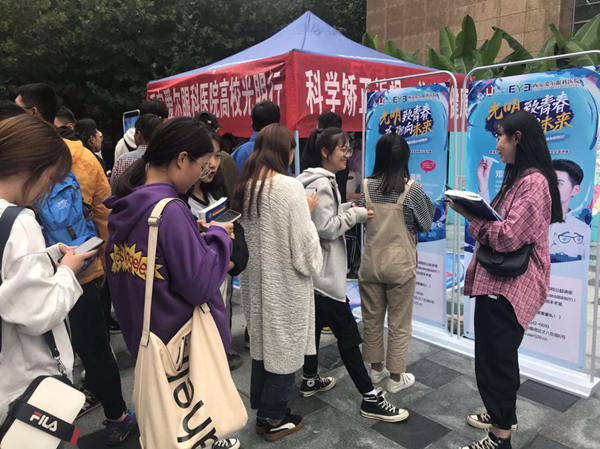 9月17日,西安爱尔眼科医院携手西京学院爱心医疗服务队在大学生发展与服务中心门口开展“西京学院最美眼睛”活动,帮助近1000名师生免费检查眼睛,同时开展宣传眼睛科普知识,现教眼保健操,免费清洗眼镜等活动。