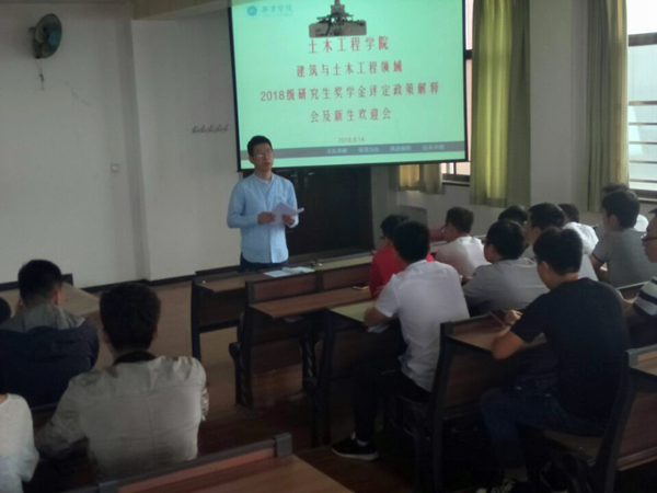 9月14日,土木工程学院2018级研究生开学座谈会暨2018年研究生奖助学金评定说明会在3540教室举行,该学院全体研究生参加了座谈会,座谈会由教研科何世丹主持。