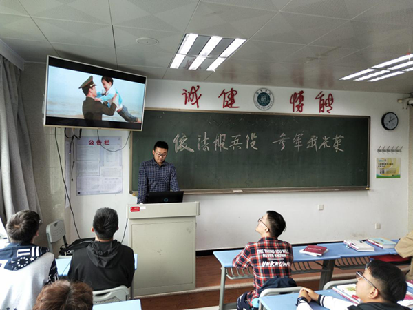 各班级通过观看《携笔从戎,报效祖国》《爸爸我长大了也要去当兵》宣传片,激励学生到军营建功立业。