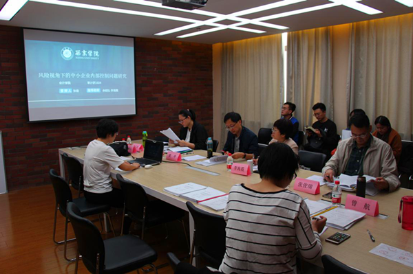 9月17日,会计学院在图书馆五楼会议室举行2019届审计专业硕士研究生学位论文预答辩。西安交通大学博士生导师张俊瑞教授、我校会计学院院长李海霞、硕士研究生导师黄申、荣庆娇等出席并担任答辩委员会委员。