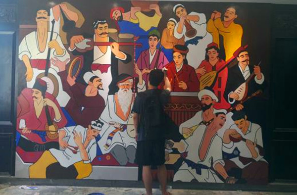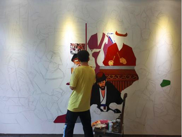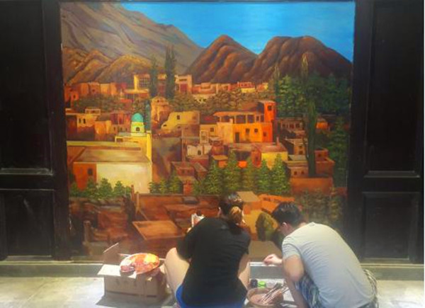 在西京学院不断加强学风建设之际,博雅书院美术学专业的学生积极将自己在学校所学的专业知识运用到实践中,美术学15级的学生建立墙绘实践小组,自己联系餐厅、酒店等单位进行墙绘创作。