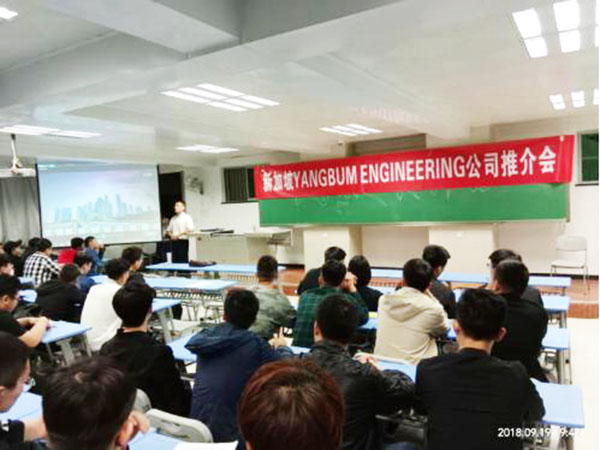 宣讲会上,新加波YANGBUM ENGINEERING公司负责人结合我校专业方向介绍了公司的发展情况、研发情况以及管理和技术岗位的能力需求;重点介绍了面试办理流程、薪资待遇等。并就老师和同学们关心的问题和疑惑做了详细的解答。
