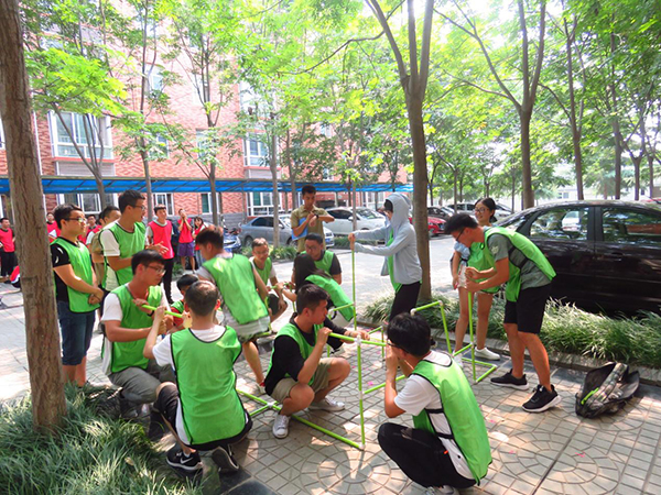 团训教官迅速组织同学们集合列队,紧接着跟同学们介绍了此次团训的课程内容以及训练规则。团训分小组进行,共分为橘、黄、蓝、红、绿5个小组。活动项目由“爱的鼓掌”“极速60秒”“移动高尔夫”“呼吸的力量”“疯狂的市场”“命悬一线”等团队协作游戏组成。