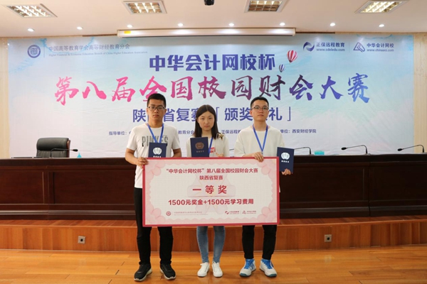 6月23日,由中国高等教育学会高等财经教育分会指导、正保远程教育主办的“中华会计网校杯”第八届全国校园财会大赛陕西省复赛,在西安财经大学长安校区举办。由我校会计学院2015级CPA教改实验班王家豪、朱莹莹、刘腾等三名同学组成的代表队经过三轮苦战,脱颖而出,最终夺得全省第一名的好成绩,并将代表陕西省赴京参加全国总决赛。