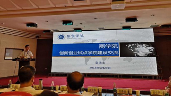 2018年6月29日,陕西省教育厅于西北农林科技大学组织召开陕西高校创新创业教育改革示范校和试点学院(系)建设工作推进会。陕西省委高教工委委员、省教育厅副厅长、省高教局副局长刘建林教授出席会议并讲话,西北农林科技大学校长吴普特教授致辞,我校商学院秦效宏院长受邀参加,并做主题发言。