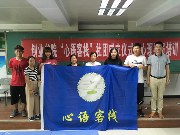 通过大家毛遂自荐,公平选举,“心语客栈”成立了。社长由学前教育1705班的高冰莹同学担任,李露等5名成员任委员。随后高冰莹做了题为“探索心灵,成就自我”的演讲,她向书院二级心理辅导站承诺,一定要和社团成员一起奉献坚实之力,不断学习,虚心请教,服务学生。仪式最后王素兰向社团授旗。