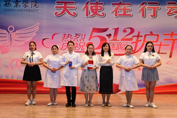 为庆祝第107个国际护士节,5月11日晚上,西京学院第四届护理礼仪大赛暨传光授帽仪式在小礼堂举行。陕西省首位南丁格尔奖获得者、西安交通大学第二附属医院杨惠云老师应邀参加了此次活动,参加此次活动的校外护理专家还有:西安交通大学医学院护理系教授顾炜、陕西省友谊医院护理部主任侯诗箐、西安市第三医院护理部主任吴利娜、陕西省第四人民医院护理部主任袁艳奇、长安医院护理部主任李迎春。我校副校长王晋荣、教务二处处长边伟、允能书院院长程永清、医学院院长张煜星及2017级500多名护理专业学生参加了此次活动。