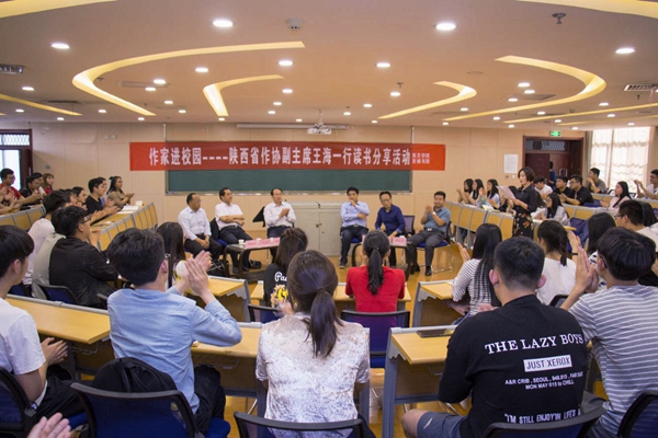 5月2日下午,由至诚书院主办的“作家进校园-省作协作家读书分享”活动在图书馆203报告厅举办,特邀陕西省作协副主席、长篇小说委员会副主任、咸阳市文联副主席、至诚书院客座教授王海;咸阳作协主席、中国作协会员、省纪实文学委员会副主任、省文字院筌约作家董信义;陕西省作家协会会员、西北农林科技大学MBA导师、咸阳市人民调解协会会长魏定平;中国作家协会会员、原兰州军区政治部电视艺术中心签约编剧贾松禅;陕西省作家协会会员、陕西省水文化专家、陕西省抗震专家、陕西省文化传播协会研究员、咸阳市职工作协副主席凌晓晨五名知名学者与学生面对面交流、传递文学感悟,200余名学生参加活动。