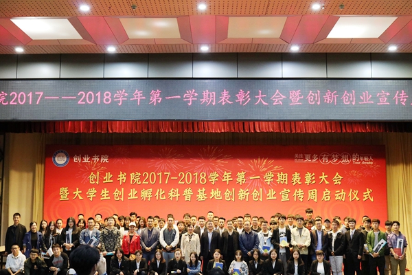4月25日下午,创业书院2017-2018学年第一学期表彰大会暨创新创业宣传周启动仪式在我校小礼堂举行。通识教育中心主任翁建定、大学生创业就业中心主任王君、体育教育中心主任康建、公共艺术中心主任马国良、创业书院院长王素兰、商学院教务科科长史高峰、大学生发展与服务中心发展科科长陈垚希和创业书院全体辅导员及400余名学生代表参加此次表彰大会。大会由创业书院学生发展科科长赵文杰主持。