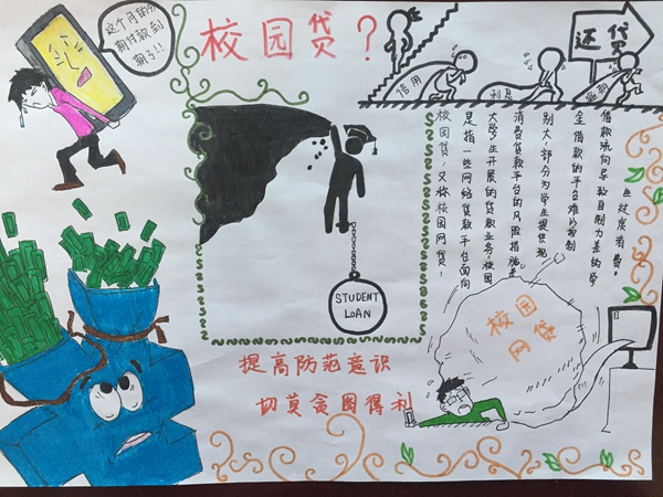 开展“远离校园贷,幸福一家人”手抄报活动。3月10--14日,至诚书院15级各专业组织开展了“远离校园贷,幸福一家人”手抄报活动。各班级的手抄报内容丰富,有的讲述了真实的案例,有的描述了当下校园贷的多种形式途径,有的直接讲明了校园贷的危害。此次活动通过绘制手抄报这种形式,对学生进行了直观形象的教育,提升学生的安全防范意识,倡导理性消费,营造积极、健康、合理的消费观念,增强学生的家庭责任感,使其自觉远离校园贷行为。