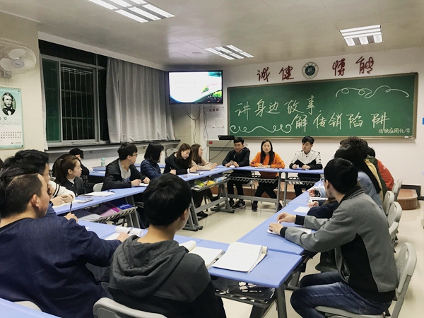 举行“讲身边故事,解传销陷阱”分享会。2018年3月13日,辅导员郭培组织15级应用化学专业开展了“讲身边故事,解传销陷阱”主题分享会。分享会上辅导员通过讲解发生在身边的一些传销案例,帮助学生了解传销的本质和形式,使同学们认识到传销的危害,从而坚决抵制非法传销诱导,立足个人实际,诚信做人,勤劳致富,树立正确的价值观。