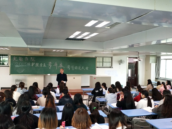 韩朝就护理专业近年来专升本录取状况与相关工作做了介绍。他说:提升学历专升本是学生与家长及学校的共同心愿,也是反映医学院专科人才培养质量的重要指标之一,医学院非常重视专升本工作,希望全体同学积极备考,都能够取得好成绩。他提醒同学们,专升本没有捷径可走,只能依靠个人的努力,平时的积累,大家一定要脚踏实地,把所学课程学好,并要注意考前复习和练考提升。