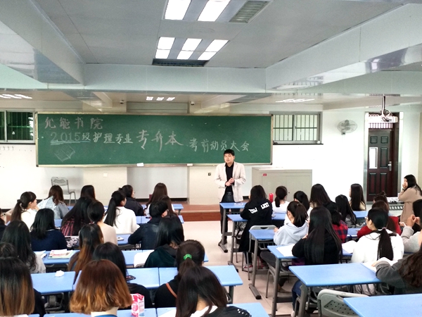 3月20日下午,2015级护理专业召开了2018年专升本动员大会,允能书院院长杨德森、医学院教务科科长韩朝参加会议并发言,会议由允能书院辅导员宋思迪老师主持。