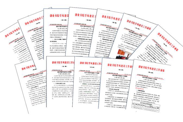 不断加强学风建设工作。学风是大学精神的集中体现,是教书育人的本质要求,优良学风是提高教育教学质量的根本保证。根据《西京学院关于进一步加强学风建设的实施意见》和《创业书院学风建设具体落实措施》的有关要求,书院一直对学风建设工作常抓不懈,坚持标本兼治、综合治理。院领导十分重视学风建设在大学生思想政治教育工作中的核心作用,书院始终坚持“五个检查通报制度”。即:班级到课率的督查制度、辅导员每周的听课制度、辅导员每周的进公寓检查制度、机关科室每周日的班会督查制度和每周教室卫生的检查评比制度。