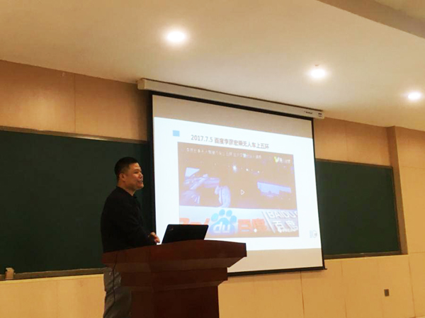 报告会上,张传雷博士图文并茂、生动详实地向师生们介绍了无人驾驶技术的发展历史、无人驾驶的分类、以及国内外无人驾驶技术的研究现状,分析了无人驾驶的原理,重点对百度的阿波罗计划进行了阐述,对无人驾驶目前面临的技术难题和推广应用方面的问题进行了探讨,并简单介绍了自己的研究团队正在做的相关研究工作。最后,张传雷博士从工程应用角度出发,对于控制工程研究生和物联网本科生提出了建设性的学习建议。