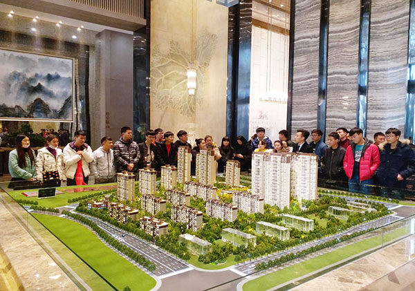 此外,同学们还到到曲江·华著中城、海亮唐宁府、西安恒大御龙湾等楼盘参观学习,各项目负责人分别向同学们详细介绍了项目的营销模式,并带大家参观了沙盘、样板间、园林配套等设施。