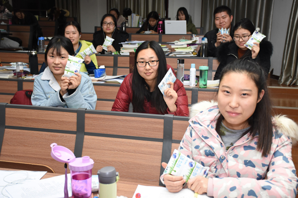 马璐转达了校长任芳对14级考研学生的殷切期望和关怀,她说,任芳校长专门安排购买考研牛奶,因为工作原因不能亲自来看望大家,特委托行健书院代为转达她对同学们的问候。最后要求考研学生在努力备考的前提下,保证营养,确保有良好的身体素质和心理素质面对高强度的考研压力。