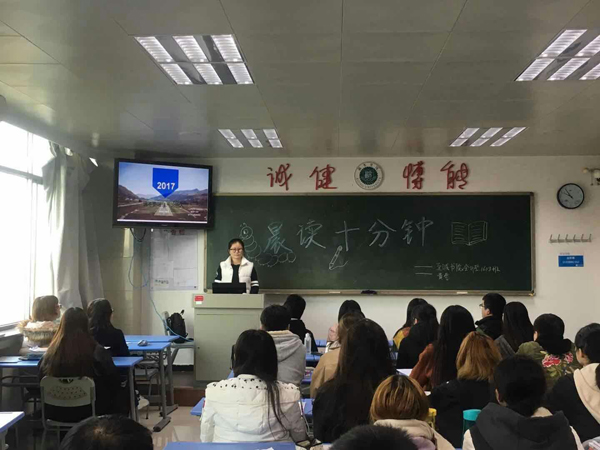 ——进行学风建设晨读十分钟活动的动员和启动。“一年之计在于春,一日之计在于晨”现在大学生普遍没有看书,看报,看新闻的习惯,继而对中国传统文化传承的消极影响,对时事政治的了解缺乏。为此我书院辅导员武旭老师针对此问题,摒弃原有单一的晨读内容模式,结合学生的学习现状,重新定义和组织晨读,晨读是一个好习惯,武老师定义的晨读模式更是同学们课前提神和知识积累一个直播平台。
