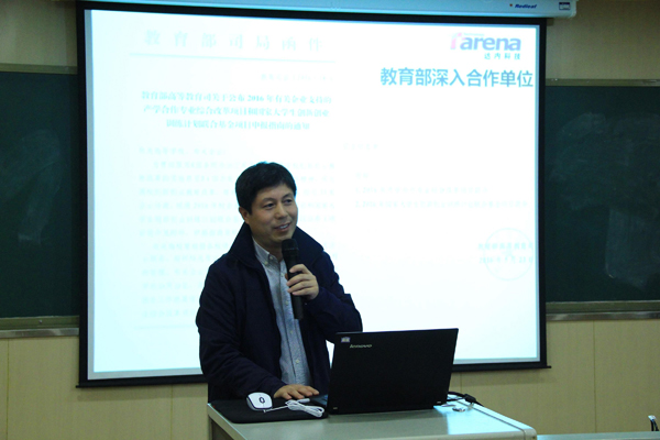 首先,陈相峰对本届定向培养班的培养内容JAVA大数据和UI前端设计作了详细介绍,向同学们分享了其15年来从事IT行业技术和管理经验,针对目前计算机相关专业未来的发展方向和就业前景做了分析,引发了同学们的共鸣。希望同学们能在定向培养班里提升自己的项目实战和技能竞赛能力,有效地将理论与实践接轨。