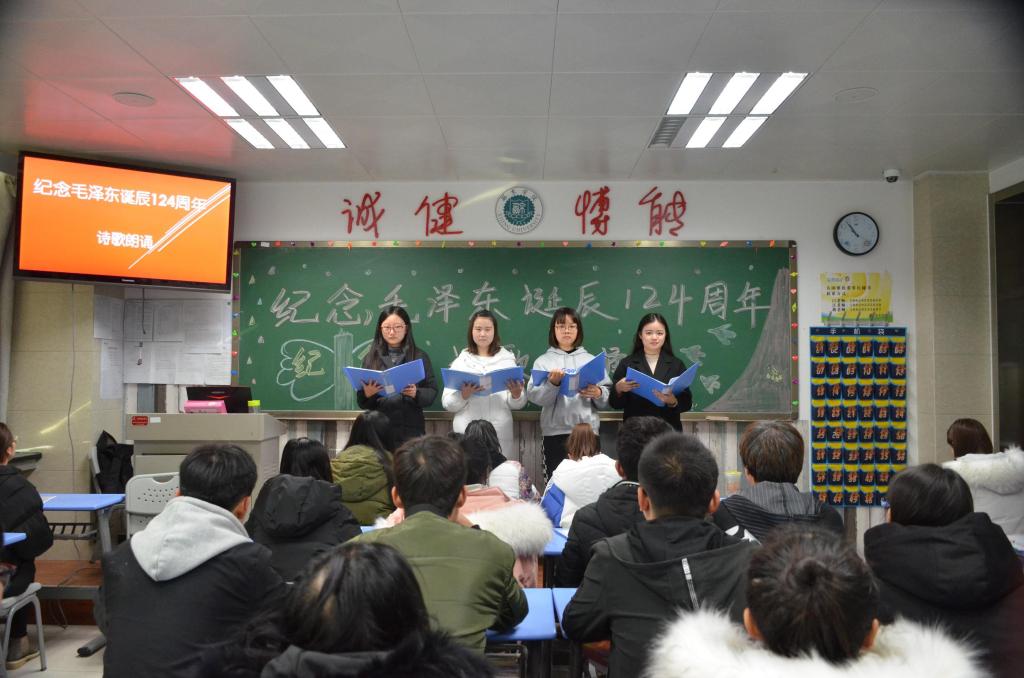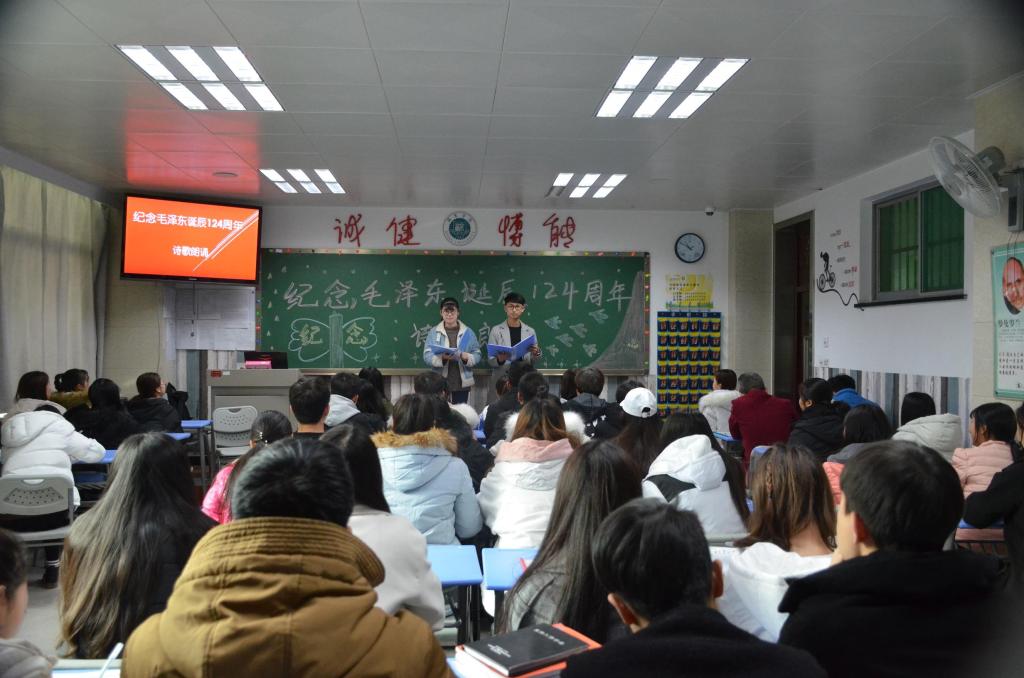 为纪念毛泽东同志诞辰124周年,12月26日,允能书院在1442教室举行毛泽诗词朗诵,深切缅怀一代伟人毛泽东。