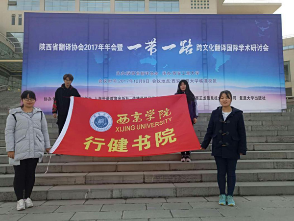 西京网讯:12月9日,陕西省翻译协会2017年年会暨“一带一路”跨文化翻译国际学术研讨会在西安工程大学临潼校区顺利召开。本次研讨会由陕西省翻译协会主办,西安工程大学、外语教学与研究出版社、上海外语教育出版社、清华大学出版社等单位承办,议题是讨论交流在“一带一路”背景下我国和世界跨文化翻译研究现状及中国文化走出去跨文化翻译的路径与原则,省内部分外语学院的师生代表参会,行健书院含笑班英语和汉语国际教育专业同学应邀参加此次研讨会。