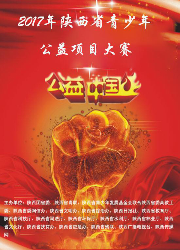 根据《全面深化改革进程中共青团工作五年发展纲要》、《中国青年志愿者行动发展规划(2014-2018年)》要求,广泛联系和凝聚公益社会组织,推动陕西青少年公益事业发展,团省委、省青联、省青少年发展基金会联合省委高教工委、省委网信办、省文明办、省综治办、陕西日报社、省教育厅、省科技厅、省司法厅、省环保厅、省水利厅、省林业厅、省文化厅、省扶贫办、省应急办、省残联、陕西广播电视台、陕西传媒网等共同举办“2017 年陕西省青少年公益项目大赛”(以下简称“大赛”),进一步打造集项目展示、资源配置、组织交流和文化引领于一体的全省性公益文化建设综合平台,推动陕西省公益事业实现科学发展,动员引导广大青年和社会公众以青春梦想、用实际行动为实现中国梦作出新的更大贡献。