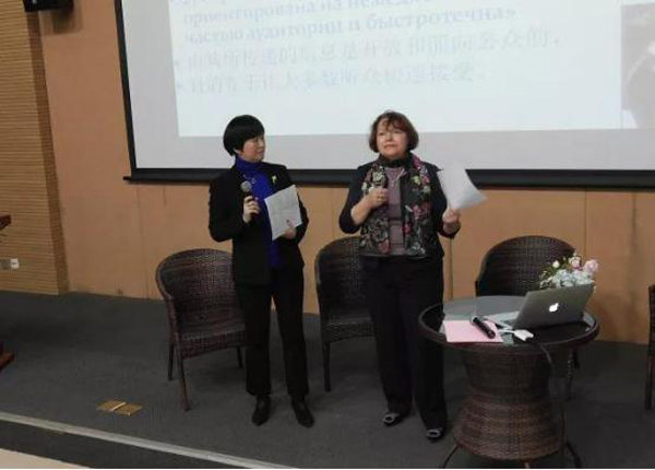 论坛分为主题演讲和对话交流两个部分。娜塔莎教授从俄罗斯媒介普及、国民的媒介接触和俄罗斯媒介文化等方面想在场师生介绍了俄罗斯传媒生态的整体状况,孟霞教授就俄语及俄国文化在中国的传播进行了梳理,王忠博士和张临涛博士博士分别作了 《我所经历的俄罗斯传媒教育》和《俄罗斯传媒现状及发展》的主题演讲。