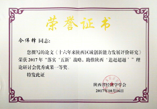 西京网讯:陕西省经济学会2017年年会于日前在陕西省委党校举行,我校会计学院教师令伟锋、杨东、岑磊等在此次征文比赛中获奖,其中令伟锋撰写的论文《十六年来陕西区域创新能力发展评价研究》荣获一等奖。
