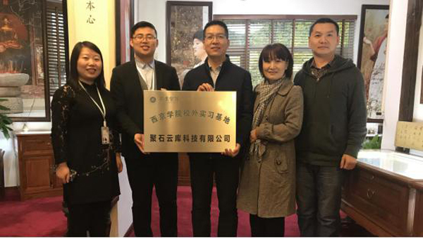 李娜总监对秦效宏院长一行的到来表示欢迎,并详细地介绍了公司的运作模式、公司的成果以及公司未来的发展前景等。随后,由秦效宏院长介绍了商学院的办学特色、学生培养以及相关专业发展建设状况,并就学生实习实训、教师交流学习、科研合作等事宜进行了交流探讨。双方拟在企业承担学生校外实习实训工作,企业教师进校、共同开发课程、学生实践培养、推荐学生就业等方面开展紧密合作。交流之后,李娜带领秦效宏院长一行参观了聚石云库的办公场所,以及部分学生的实习工作成果。