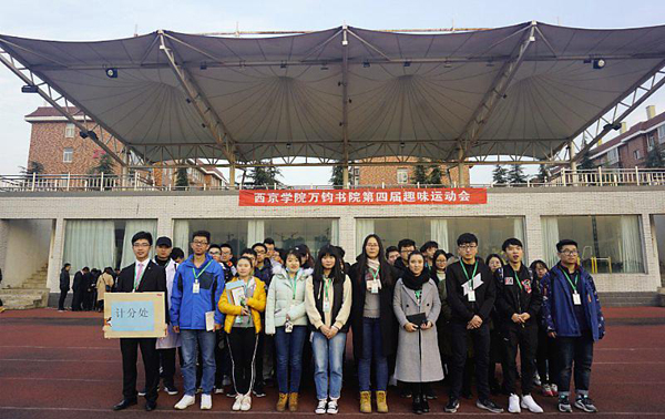 西京网讯:为贯彻落实由共青团中央、教育部、国家体育总局、全国学联倡导的“走下网络,走出宿舍,走向操场”的三走活动。11月20日下午,西京学院万钧书院联合学校体育中心在田径场举办万钧书院第四届趣味运动会。