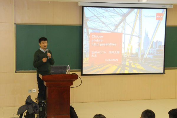 ——新一届ACCA方向班宣讲举行,场面火爆。11月8日晚,2017级ACCA方向班宣讲会在图书馆102报告厅举行,来自全校各专业有意向加入ACCA团队的同学参加宣讲会,会计学院院长李海霞、副院长侯新刚及ACCA教育中心全体教师出席,ACCA北京代表处郭涛老师应邀主讲。