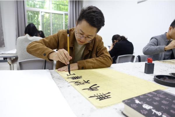 本次活动由美术学专业的班长组织策划,在艺海书法教室举行,学生们都积极参与其中,用不同的笔体书写“三无两高”的内容,随后将作品在教室墙上进行展示并合影留念。何绍奇同学说:他非常喜欢这样的活动,一方面能在课余时间与同龄人进行书法上的切磋,增强了同学们之间的感情;另一方面“三无两高”的口号给了学风上的警示。