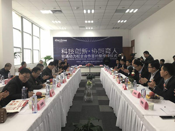 仪式开始,软通动力信息技术(集团)有限公司高级副总裁,软通大学执行校长黄岩先生致辞。软通大学作为软通动力人才战略的核心组成部分,依托软通动力在技术服务领域的多方位解决方案能力,采用先进的教学理念和模式,通过大数据、人工智能高科技的教育手段,倾力打造IT培训职业教育平台,承担着集团人才储备和培养的任务。随后西安工程大学等高校代表分别进行了发言,并举行了签约暨授牌仪式。